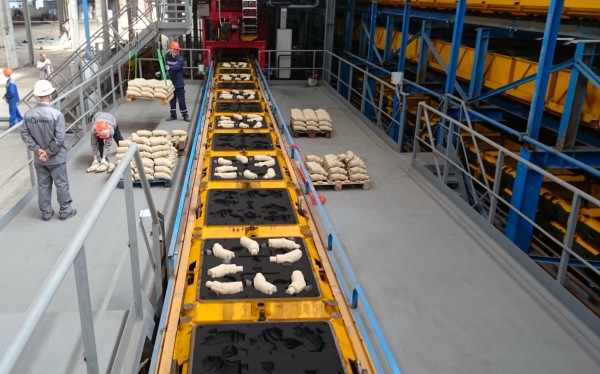 Метод формообразования – метод двойного прессования FormImpress – обеспечивает изготовление автоматической формовочной линии стабильно высокого качества. АФЛ работает полностью в автоматическом режиме. Оборудование оснащено системой контроля качества смеси SANDCONTROL и системой контроля влажности AQUATEST. Из интересного, на линии реализована система комбинированного охлаждения отливок: в опоках и в металлических жакетах.