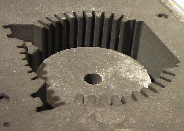- Идеальное уплотнение формы с высокой плотностью в примодельном слое и уменьшением плотности в направлении от модели к периферии.