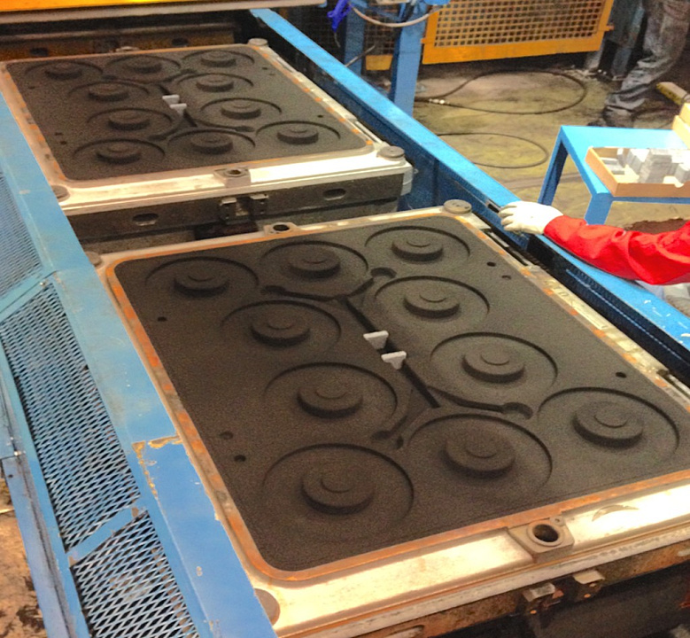 Размер опок 850x850x250/250мм, производительность 240 форм /час.